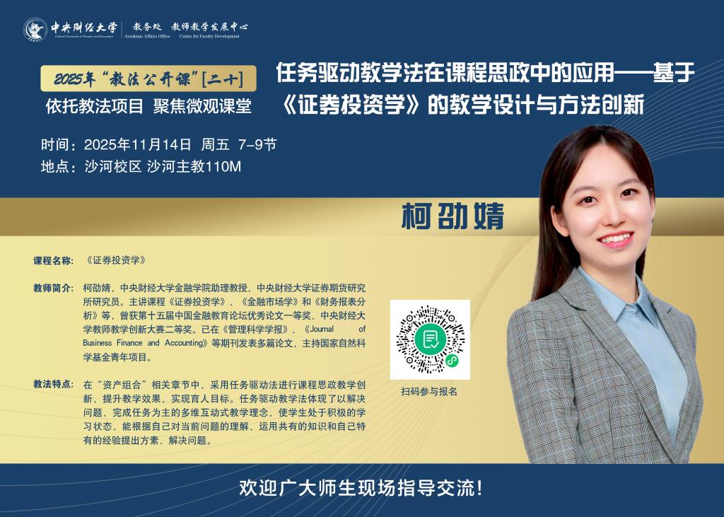 “教法公开课”2025年第20期|金融学院 柯劭婧《证券投资学》