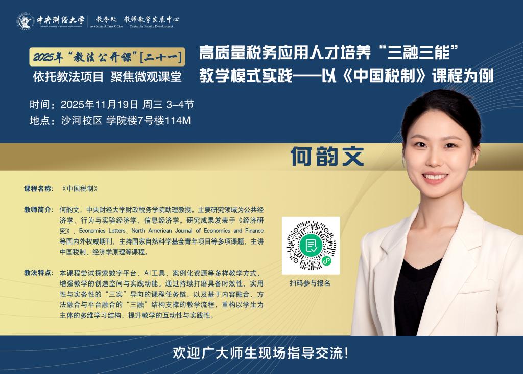 “教法公开课”2025年第21期|财政税务学院 何韵文《中国税制》