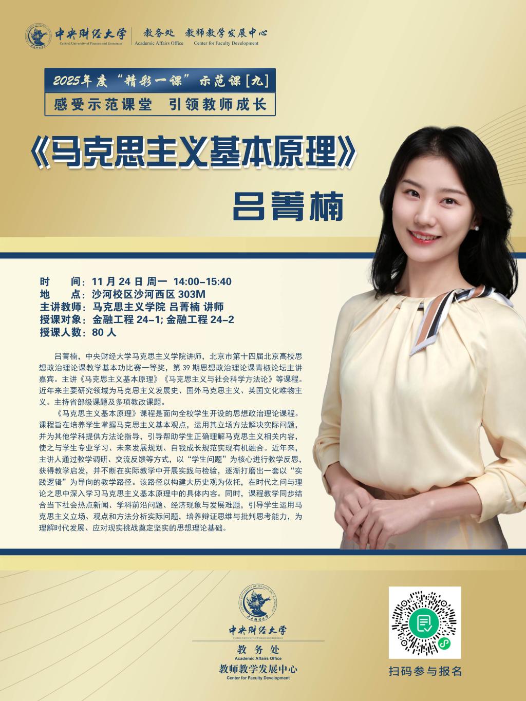 “精彩一课”示范课2025年第九期:吕菁楠《马克思主义基本原理》11月24日